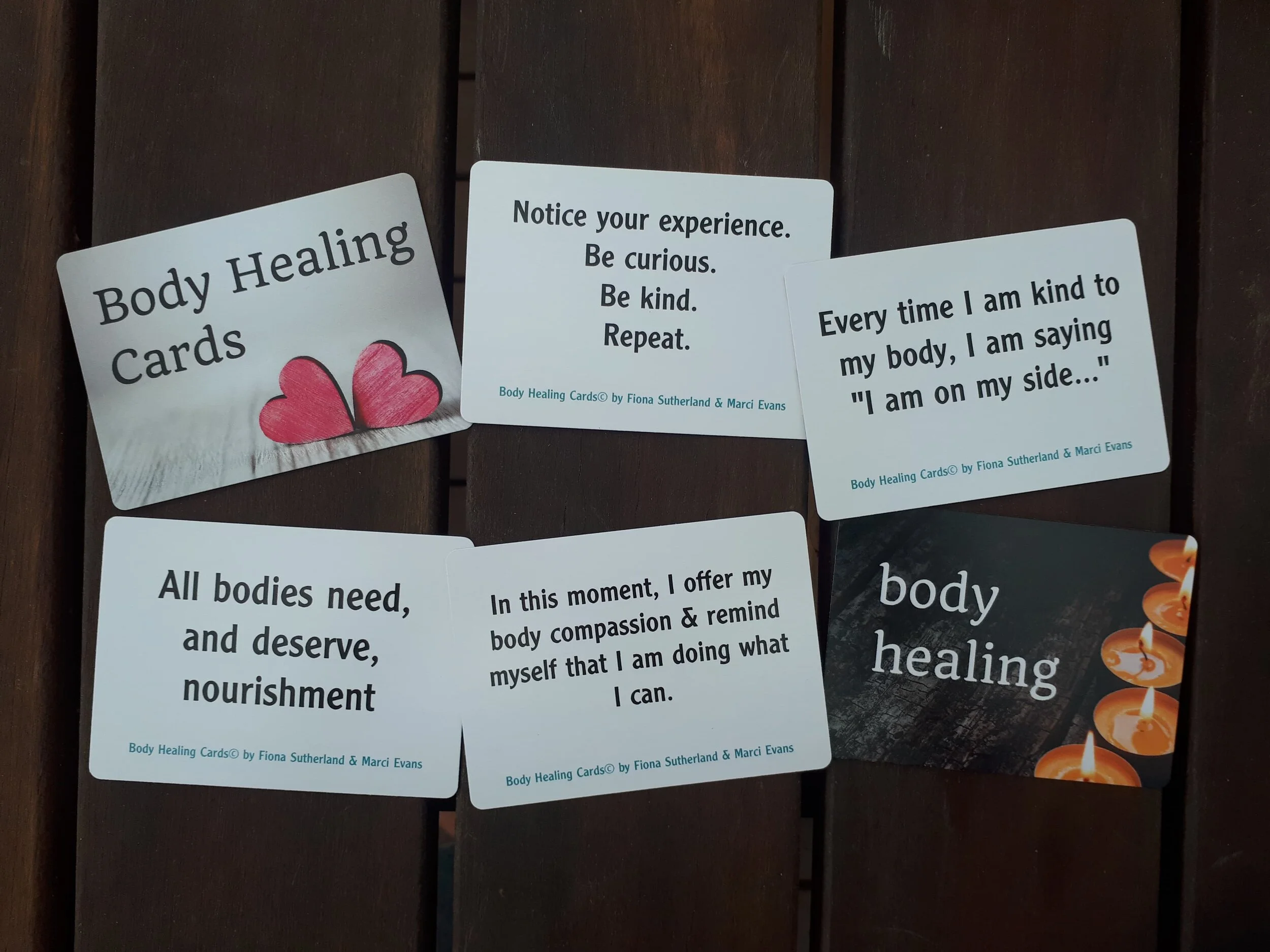 The Body Healing Cards were, until now, used exclusively as part of the Body Healing workshops facilitated by Fiona Sutherland & Marci Evans through 2018. Now, you can own your own copy even if you weren't able to make it to the workshops. Each card offers kind & divserse reminders of the ways we can take care of our bodies from a place of kindness & compassion. The pack also features contributions for amazing Dietitans from all over the world!
